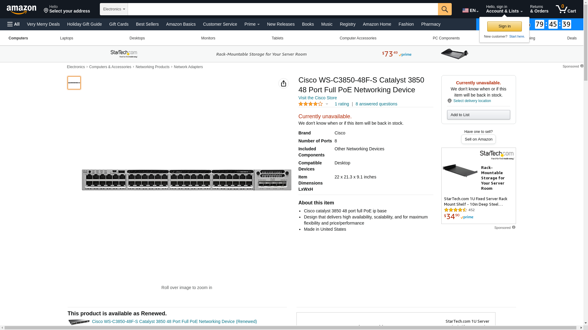 ![]() Radwell | WS-C3850-48F-S | 1 | 1 | ||