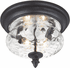 8-1/2 in. 40W 2-Light Candelabra E-12 Flush Mount Ceiling Light with Clear Hammered Glass in Black