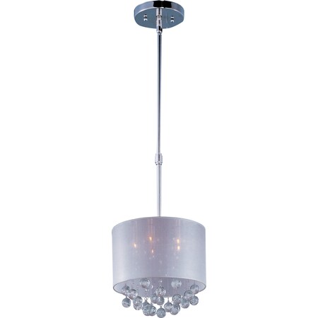 Beveled crystal beads mysteriously appear through the Veil collection's veil of Silver Sheer fabric and shimmer like diamonds in the night. Round bubble crystal suspended at various heights, create a unique accent. Shades are supported by multiple Polished Chrome stems for adjustable height.