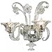 The la scala wall bracket measures 17.75"H x 19.5"W x 10.25"Ext. It's made of iron and murano style clear glass with a chrome finish. It takes two 60 watt C bulbs.