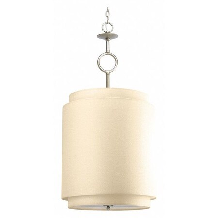 The Ashbury Collection captures traditional styling with a modern urban twist. A unique, double drum shade in thistle weave and toasted linen fabric adds a designer touch.<br/><br/> Uses three 100-Watt medium base bulbs (not included)<br/> View More from the Ashbury Collection<br/> 18 in. Dia x 35-1/2 in. H<br/> Silver ridge finish<br/> Toasted linen shade<br/><br/> Recommended Light Bulb Shape Code: A19<br/> Included: Hardware Included<br/> Hanging Device: Chain<br/> Shade Color Family: Beige/Bisque<br/> Number of Bulbs Required: 3<br/> Light Bulb Type Included: No Bulbs Included<br/> Maximum Bulb Wattage: 100<br/> Adjustable hanging length: Yes<br/> Fixture Material: Metal<br/> Product Weight (lb.): 16<br/> Connection Type: Hardwired<br/> Chandelier/Pendant Type: Drum<br/> Fixture Color/Finish Family: Stainless Steel<br/> Style: Mid-Century Modern<br/> Fixture Color/Finish: Silver Ridge<br/> Maximum Wattage (watts): 300<br/> Adjustable Lamp Head: No<br/> Certifications and Listings: 1-UL Listed,CSA Listed<br/><br/><br/> Product Depth (in.): 18<br/> Maximum Hanging Length (in.): 72.0<br/> Product Width (in.): 18<br/> Product Height (in.): 35.5<br/>