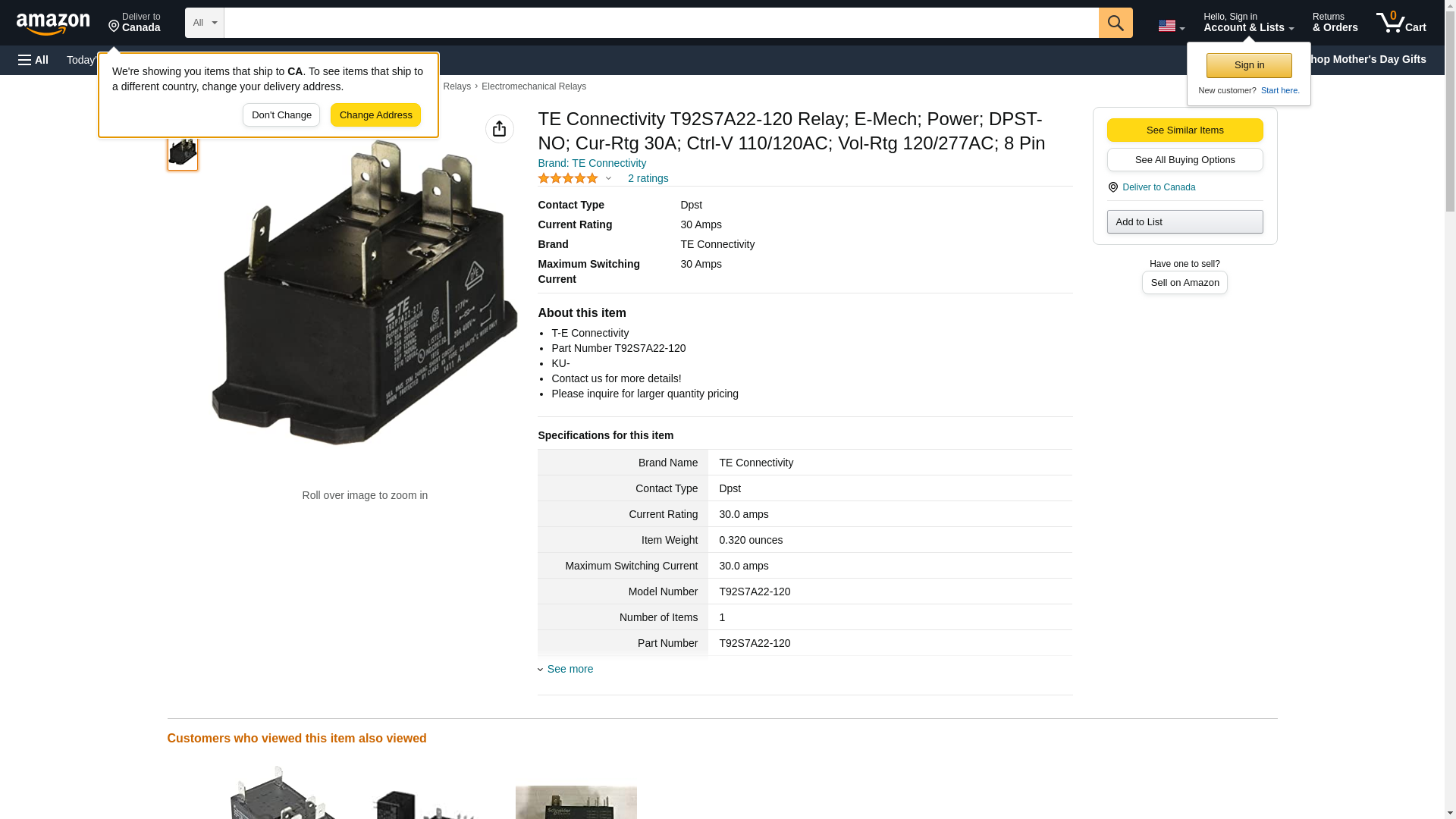 TE Connectivity / P&B Brand T92S7A22-120 Power Relays (20 Amps to 99.9 Amps)