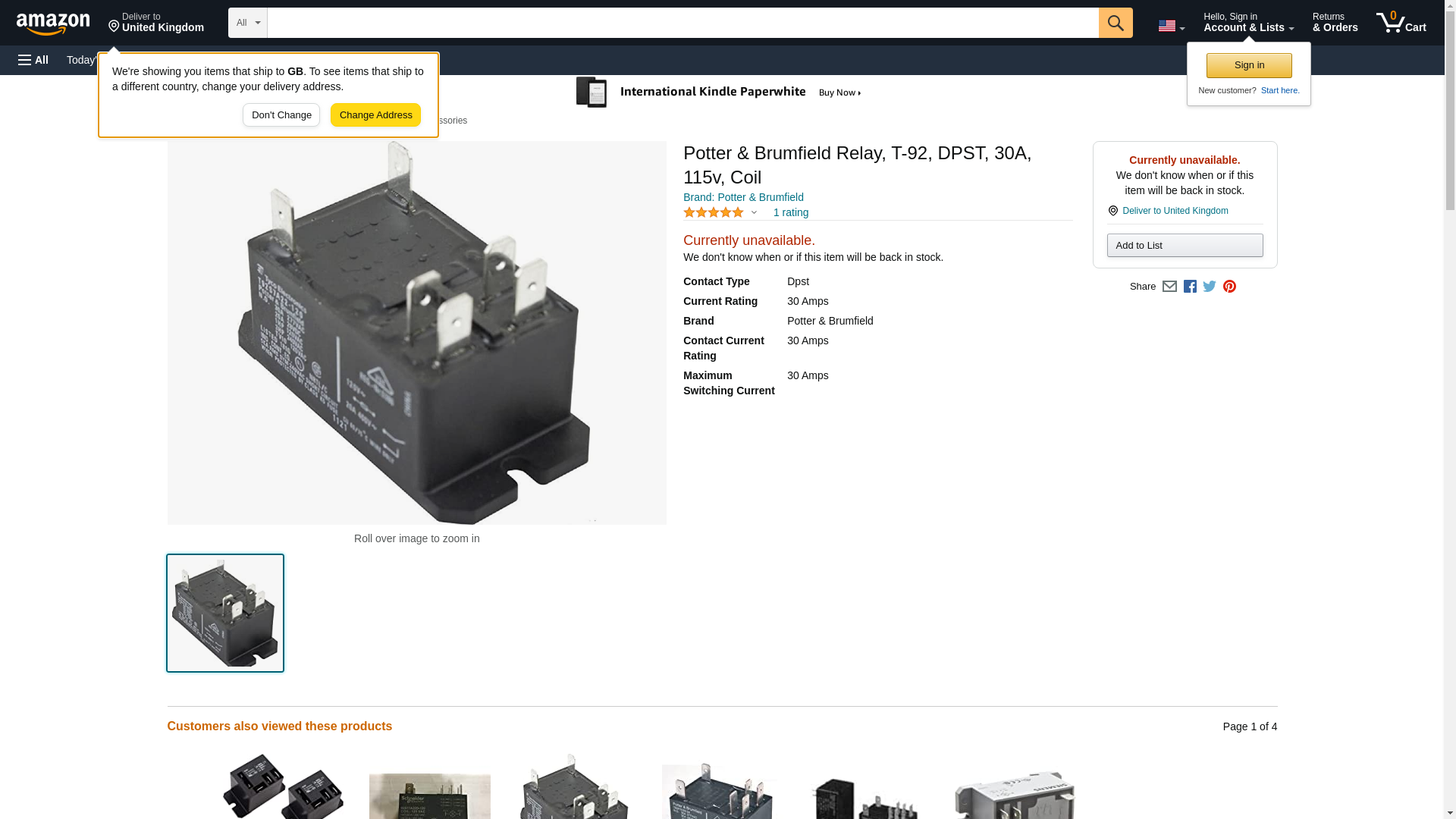 - Potter & Brumfield T92S7A22-120 DPST 30A 115V Pool & Spa Coil Relay