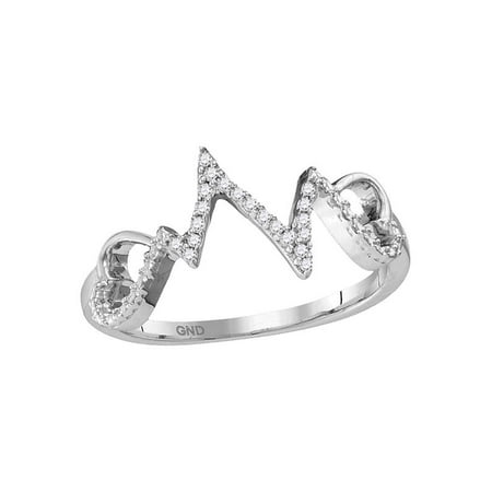Sterling Silver Womens Round Diamond Heart Love Heartbeat Ring 1/10 Cttw
