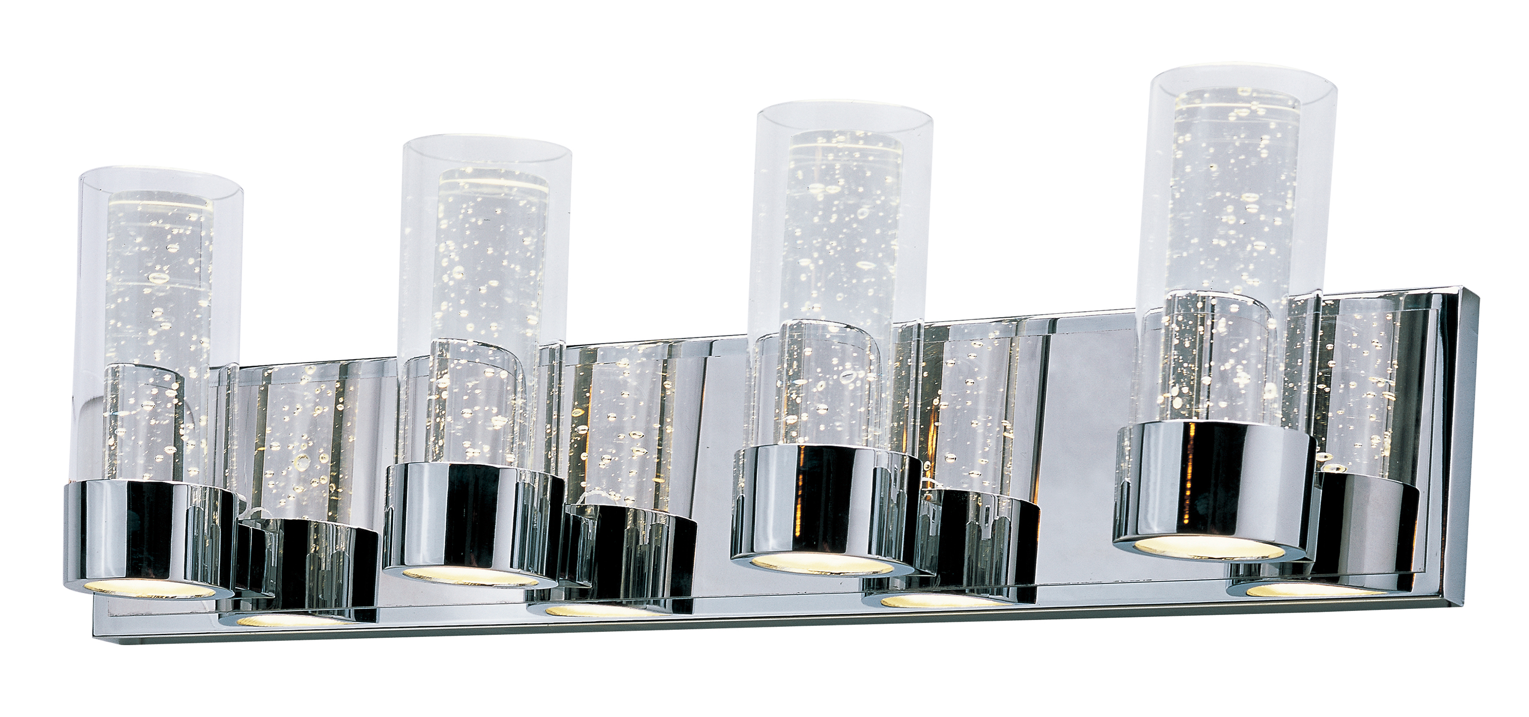 Maxim 20904CLPC Sync Clear & Bubble Glass Cylinder LED Bath Vanity Wall Mount, 4-Light 19 Total Watts, 8"H x 27"W, Polished Chrome