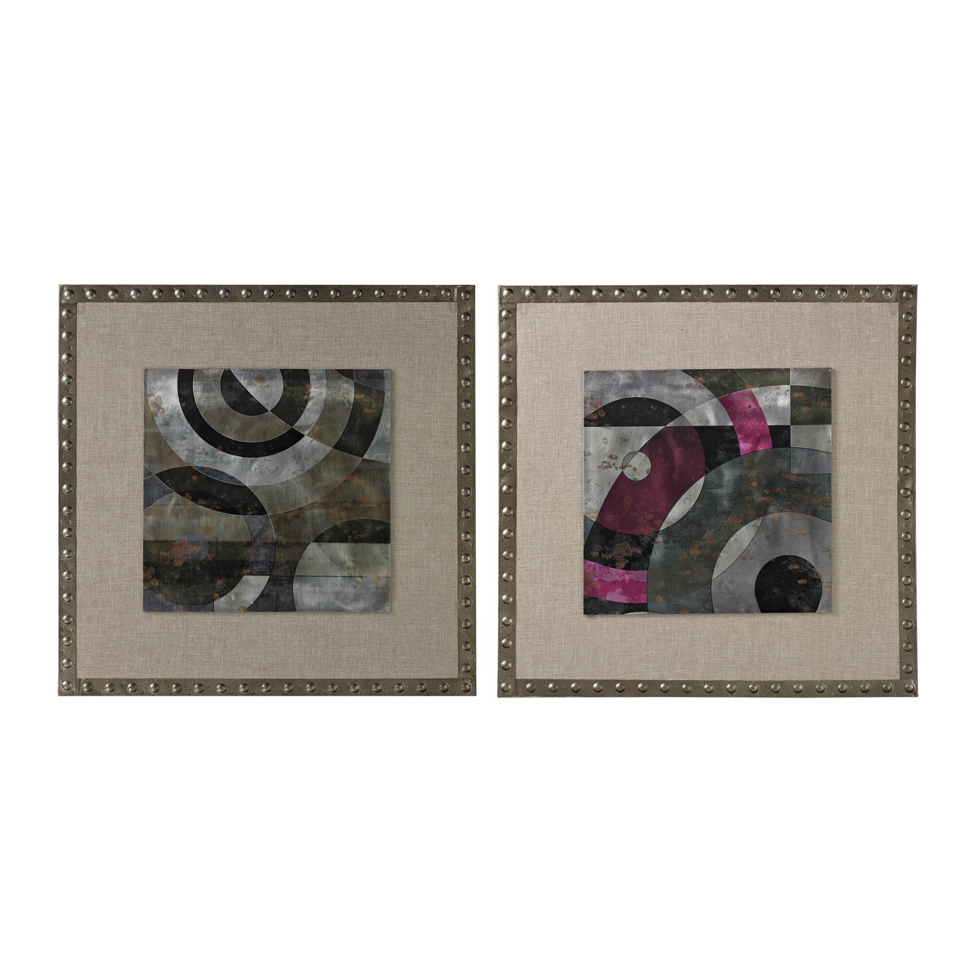 Sterling Industries 26-8683/S2 Mersey Contemporary Print on Aluminium Set in Linen and Nail Head Surround