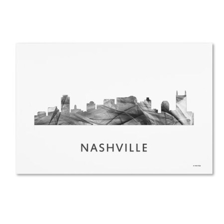 Nashville Tennessee Skyline WB-BW by Marlene Watson, 16x24-Inch Canvas Wall Art