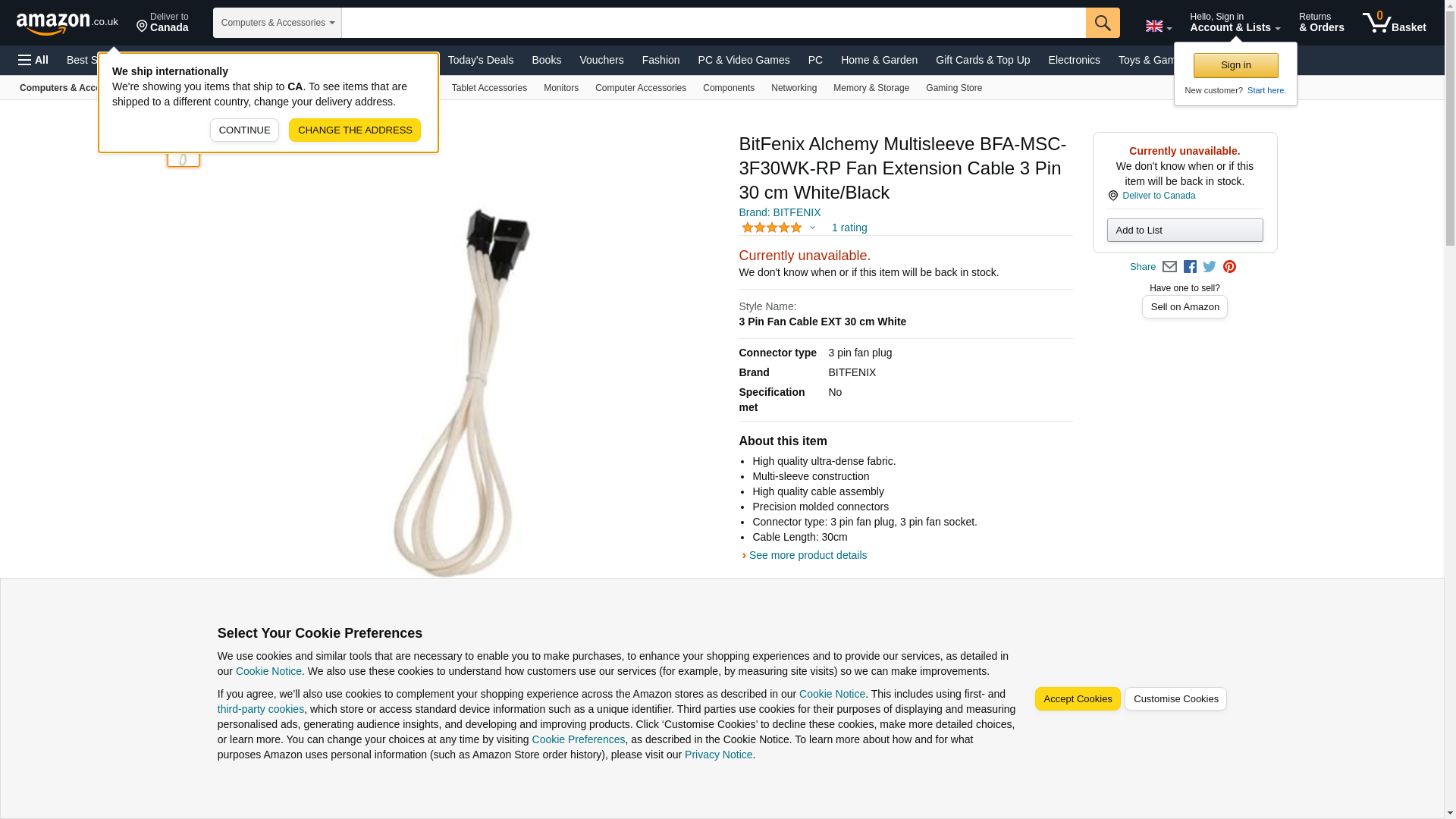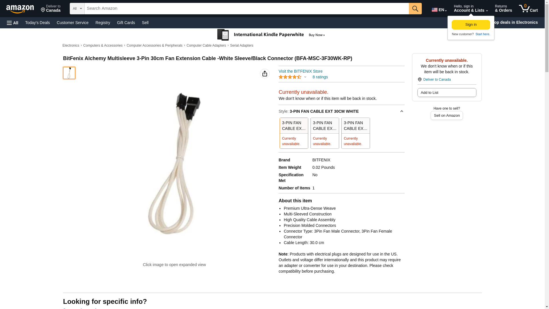 BitFenix Alchemy Multisleeve 3-Pin 30cm Fan Extension Cable -White Sleeve/Black Connector (BFA-MSC-3F30WK-RP)