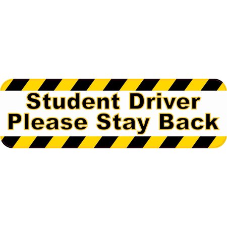 <h2 style="text-align: center;">10in x 3in (254mm x 76.2mm) White?Student?Driver?Bumper?Sticker<del></del></h2> <hr /> <strong>White?Student?Driver?Design:</strong>This bumper sticker is 10 inches wide by 3 inches tall when applied and?has the words, Student Driver Please Stay Back,?in black?letters, outlined in yellow, on a white?background. The top and the bottom of the sticker are bordered in yellow and ...