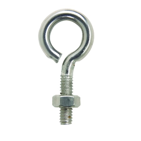 "HAMPTON" EYEBOLT *Wire dia.: .213 *Eye I.D.: 9/16" *Thread dia.: 1/4" *Overall length: 2" *Shank length: 1-1/8" *Thread length: 3/4" *Inside dia. eye: 1/2" *Safe working load limit: 160 lbs. *Nut included *Stainless steel