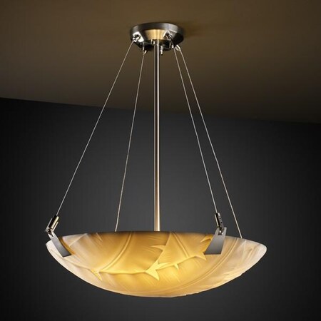 Justice Design Group Porcelina 3-Light Pendant - Brushed Nickel Finish with Banana Leaf Faux Porcelain Resin Shade