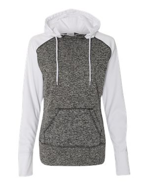 J. America B21128014 Womens Colorblocked Cosmic Fleece Hooded Sweatshirt, Charcoal Fleck & White - Medium
