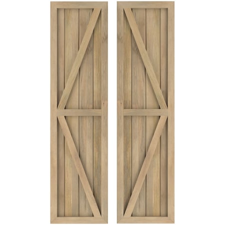 Ekena Millwork ARW102BF414X79UNH Americraft Four Exterior Real Wood Two Equal Panel Framed Board-n-Batten Shutters w/Double Z-Bar (Per Pair), 14"W x 79"H, Unfinished