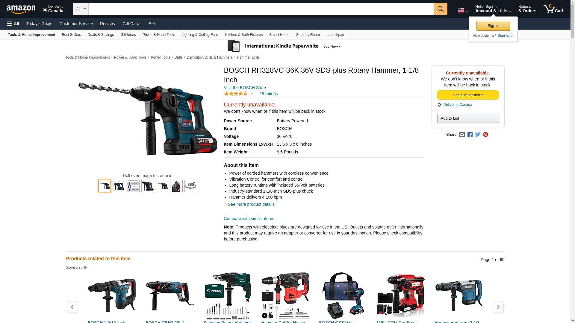 | ToolUp.com | BOSCH RH328VC-36K | 1 | False | 1 | 1 @ $749.00 |