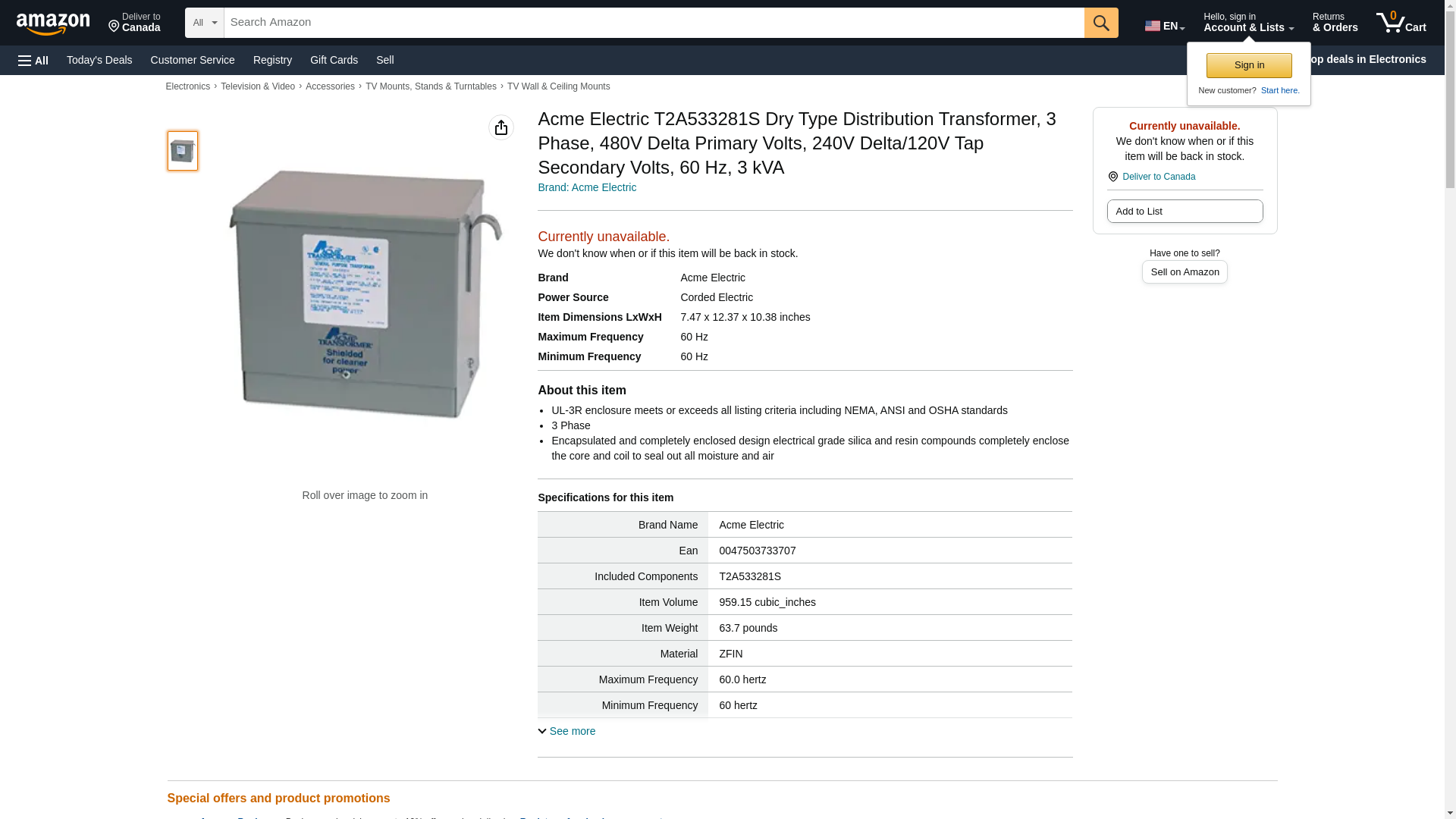 Hubbell Acme Electric T2A533281S Dry Type Distribution Transformer, 3 Phase, 480V Delta Primary Volts, 240V Delta/120V Tap Secondary Volts, 60 Hz, 3 kVA