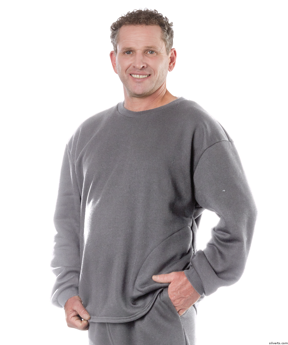Silverts 510310406 Back Snap Adaptive Fleece Sweatshirt Top Clothing for Men - Grey, 2XL