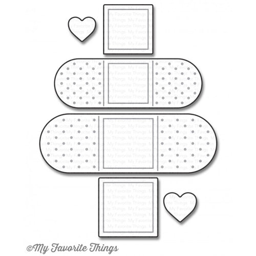 This 6 piece set includes: Bandages (2) 2.25 x 0.75, 1.875 x 0.375, Antiseptic pads (2) 0.75 x 0.75, 0.375 x 0.375, and Hearts (2) 0.4375 x 0.375, 0.375 x 0.375. All approximate measurements are in inches.