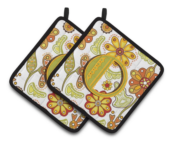 Carolines Treasures CJ2003-OPTHD Letter O Floral Mustard & Green Pair of Pot Holders, 7.5 x 3 x 7.5 in.