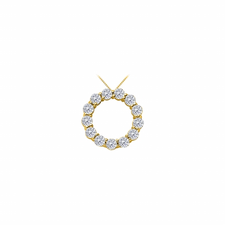 Fine Jewelry Vault UBPD1355Y14CZ 2 CT CZ Circle of Life Pendant in 14K Yellow Gold, 16 in. Necklace, 13 Stones