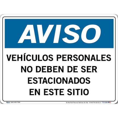 Vestil Notice SignSI-N-67-B-LB-011-S 67 12.5X9.5 .011 Label/Decal Do Not Park Personal Vehicles On Site VEHÍCULOS PERSONALES NO DEBEN DE SER ESTACIONADOS EN ESTE SITIO
