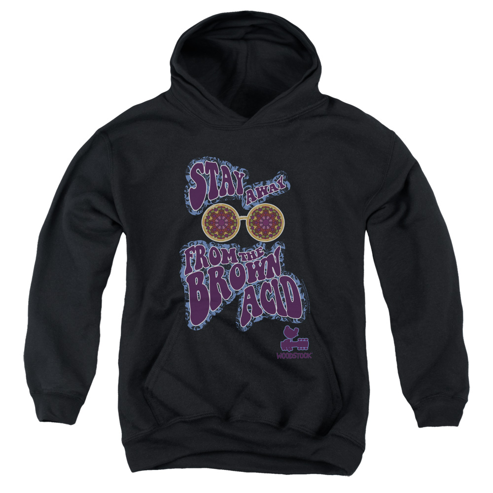 Trevco WOOD144-YFTH-3 Woodstock the Brown Acid Print Youth Hooded Sweatshirt, Black - Large