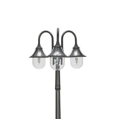 GAMA Sonic Orion Outdoor Solar Lamp Post Light Kit, Triple Black Resin Industrial Style Downlight Lamp, Cast Aluminum Light Pole with Warm White Light 2700K, 123BM50003