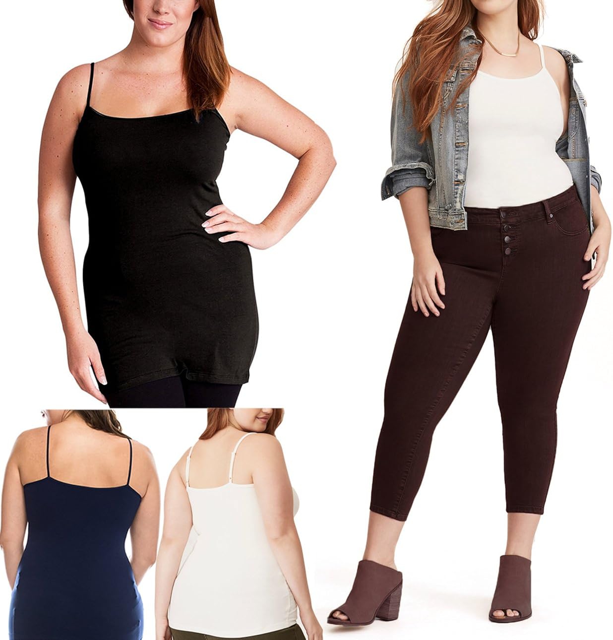 Great basic layering cami tank top in junior and plus sizes. Great for exercising, going to the gym, working out, jogging, cycling, and any activity. Must have! Emmalise is a progressive active basic apparel line designed in Los Angeles, California. Our focus is to create high quality, comfortable everyday clothing for women, men, children, and infants. Our design collection includes high quality every day long and short sleeves t-shirts, basic camisole and tank tops for easy layering, cute easy to wear children and women dresses. Our shirts and tank tops are perfect for workout, gym, running, jogging, and exercising. All of Emmalise products uses great quality, comfortable fabrics. Our focus is on great fitting fashionable cute designs. A camisole is a sleeveless undergarment for women, normally extending to the waist. The camisole is usually made of satin, nylon, or cotton. In modern usage a camisole or cami is a loose-fitting sleeveless woman's undergarment which covers the top part of the body but is shorter than a chemise. A camisole normally extends to the waist but is sometimes cropped to expose the midriff, or extended to cover the entire pelvic region. Camisoles are manufactured from light materials, commonly cotton-based, occasionally satin or silk, or stretch fabrics such as lycra, nylon, or spandex. A camisole typically has thin "spaghetti straps" and can be worn over a brassiere or without one. Since 1989, some camisoles have come with a built-in underwire bra or other support which eliminates the need for a bra among those who prefer one. Recently, camisoles have been known to be used as outerwear. A variety of sleeveless body shaping undergarments have been derived from the camisole shape, offering medium control of the bust, waist and/or abdomen. Such control camisoles are the most casual of shaping garments, covering the torso from above the chest to at or below the waist.