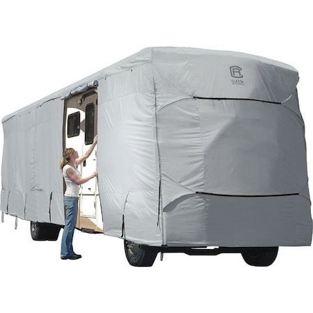 Classic Accessories Over Drive PermaPRO Class A RV Cover, Fits 37' - 40' RVs, Water-Repellant Top Panel, Durable Camper Cover, Elastic Hems and Tension Panels, Grey