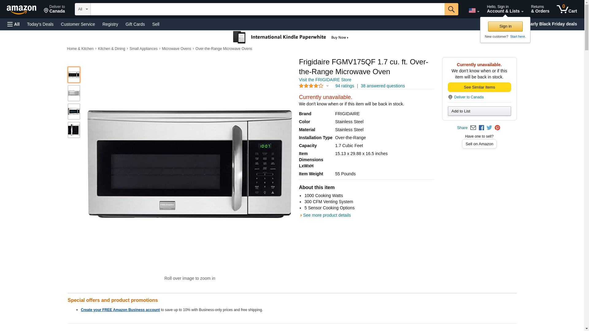 Frigidaire FGMV175QF 1.7 cu. ft. Over-the-Range Microwave Oven