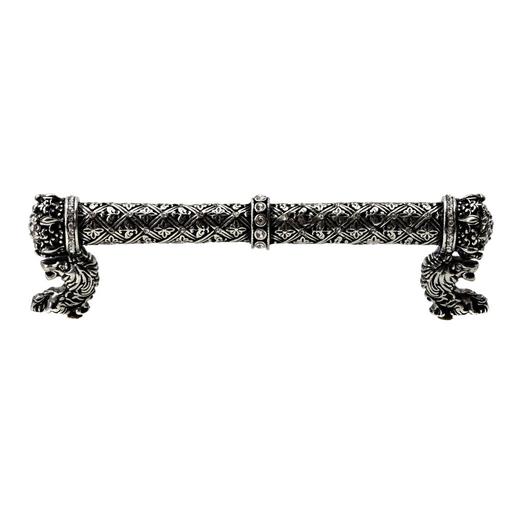 Crowning Glory Queen Elizabeth Collection - Queen Elizabeth 5" Centers Pull With Swarovski Crystals in Jet with Aquamarine by Carpe Diem Hardware - 6322-2-AQ | Knobs 4 Less