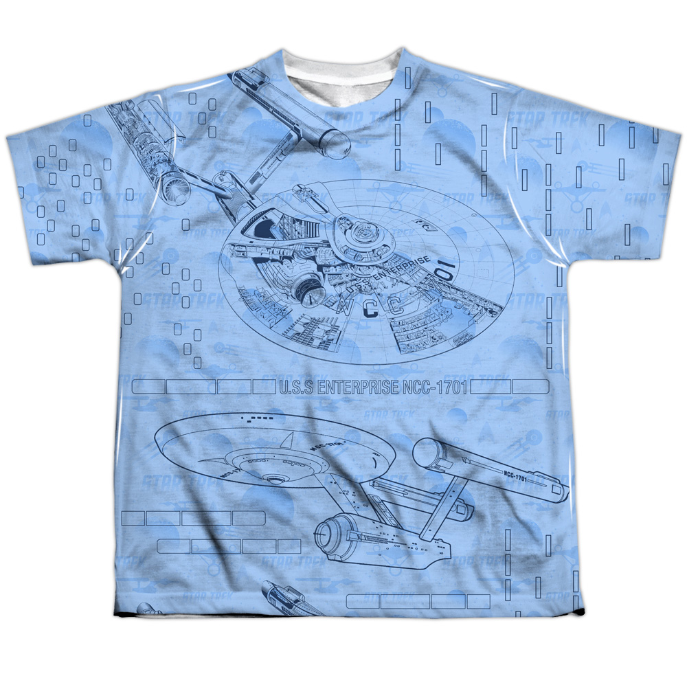 Trevco CBS1288-YTPP-2 Star Trek & Blue Print Youth Short Sleeve Polyster Crew Neck T-Shirt, White - Medium
