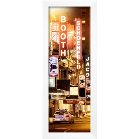 <ul> <li>Title: Door Posters - The Booth Theatre at Broadway - Urban Street Scene by Night with a NYPD Police Car</li> <li>Artist: Philippe Hugonnard</li> <li>Product Type: Framed Art Print</li> <li>Framed in SOHO White</li> <li>Arrives ready-to-hang for fast, simple installation</li> <li>Framed Size: 10x26 in.</li> <li>Handcrafted in the USA</li> </ul>