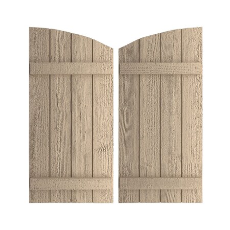Ekena Millwork SHUBJL22X52RSPR (44 5/8" Low Side) Timberthane Four Joined Board-n-Batten w/Elliptical Top Faux Wood Shutters (Per Pair), Primed Tan, 22" W x 52" H