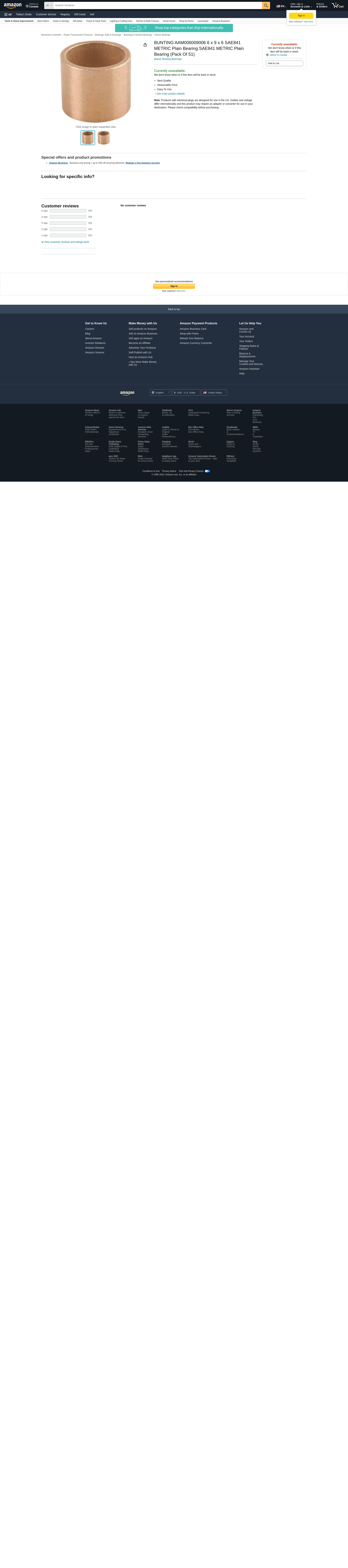 BUNTING AAM006009006 6 x 9 x 6 SAE841 METRIC Plain Bearing SAE841 METRIC Plain Bearing (Pack Of 51)