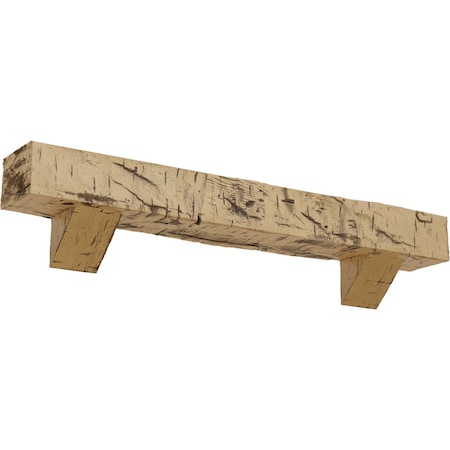 4" H x 6" D x 60" W Hand Hewn Faux Wood Fireplace Mantel Kit w/ Breckinridge Corbels, Natural Pine