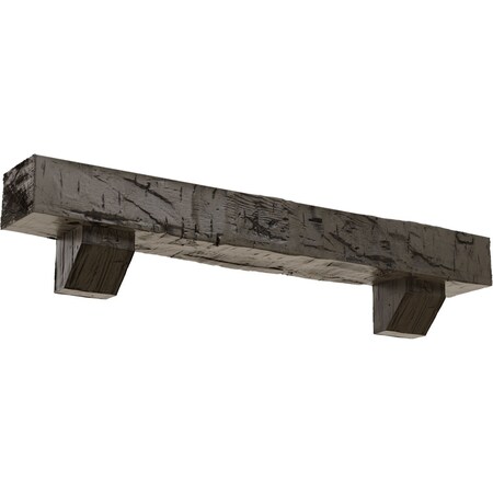 8" H x 12" D x 48" W Hand Hewn Faux Wood Fireplace Mantel Kit w/ Ashford Corbels, Burnished Honey Dew