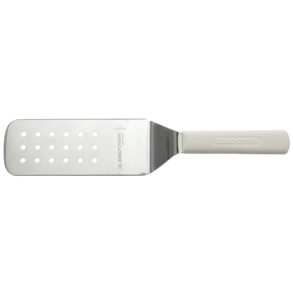 Dexter Stainless Steel Perforated Turner with White Polypropylene Handle - 8