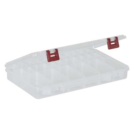 Compartment Box, Closure Type Latch, Color Clear, Electrostatic Discharge No, Material Plastic, Maximum Number of Compartments 28, Number of Adjustable Dividers 25, Overall Height 1 7/8 in, Overall Length 14 in, Overall Width 9 1/4 in, Overall Diameter Not Applicable, Series 3700, Shape Rectangular