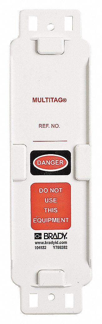 | Feature | Price For: Each Standards: ANSI Z53.1-1967; ANSI Z535-2006; OSHA 1910.145 Legend: Danger Do Not Use This Equipment Background Color: Red, White Header Background Color: Black, Red Language: English Header Legend Color: White Write on Surface: Yes Legend/Background Color: Black and Red/White Width: 2-1/4" Legend Style: Text Material: Plastic Item: Multitag(R) Holder |