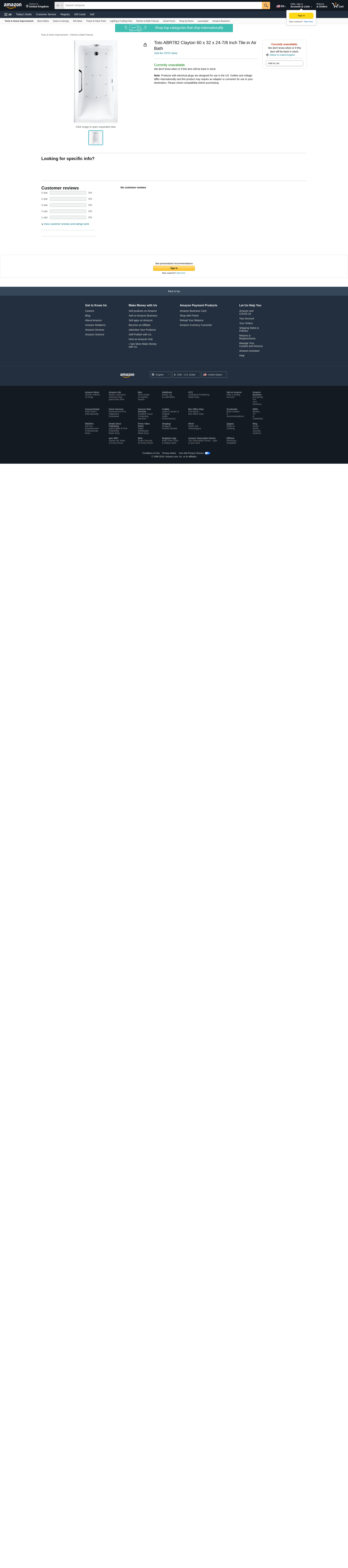Toto ABR782 Clayton 60 x 32 x 24-7/8 Inch Tile-in Air Bath