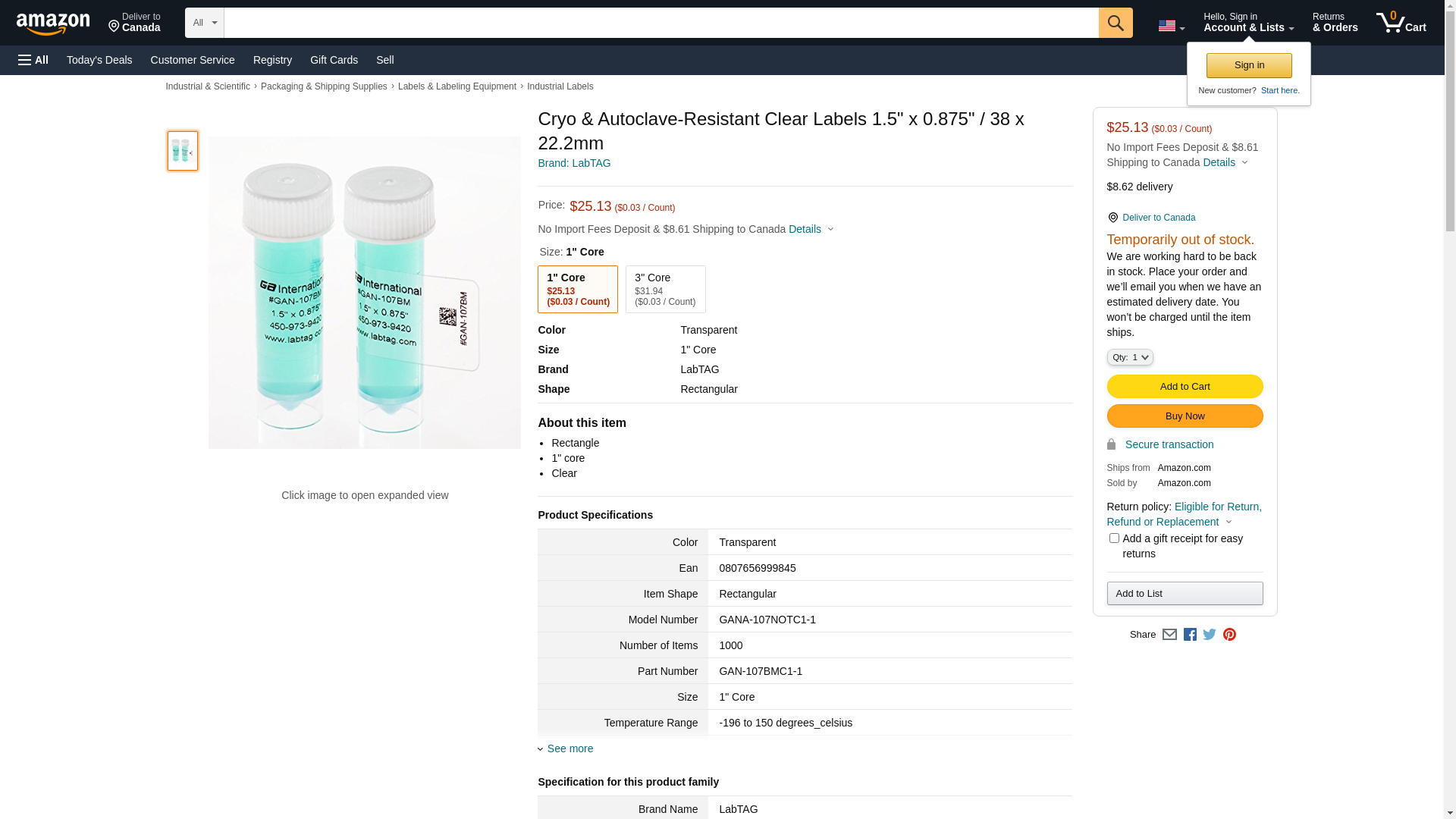 Order GANA-107NOTC1-1 by LabTAG Cryo & Autoclave-Resistant Clear Label - US Mega Store