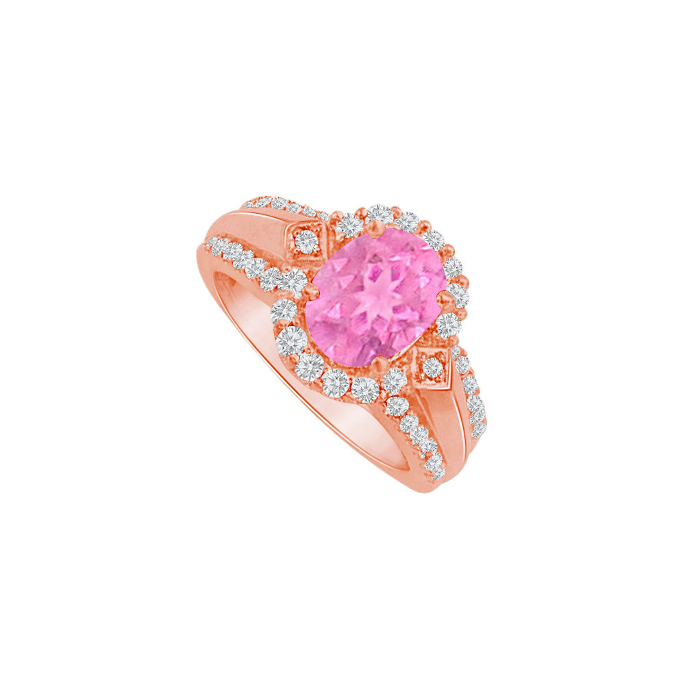 Fine Jewelry Vault UBUNR83760AGVR9X7CZPS Pink Sapphire CZ Halo Engagement Ring Rose Gold Vermeil