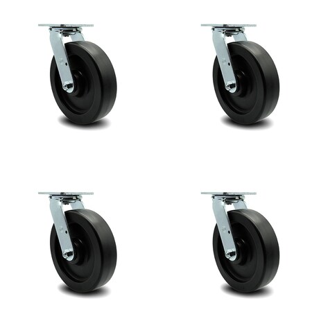 Polyolefin Swivel Caster w/Main. Free Bearings Set of 4 w/8" x 2" Black Wheels - Includes 4 Swivel - 3600 lbs Total Capacity - Service Caster Brand