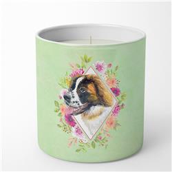 Carolines Treasures CK4347CDL 10 oz Saint Bernard No.2 Green Flowers Decorative Soy Candle