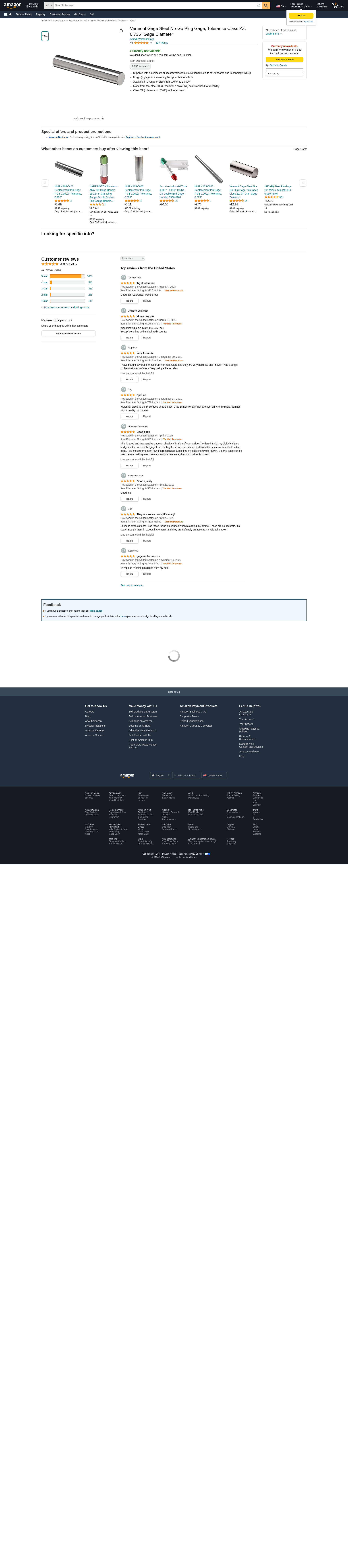 Vermont Gage Steel No-Go Plug Gage, Tolerance Class ZZ, 0.736" Gage Diameter