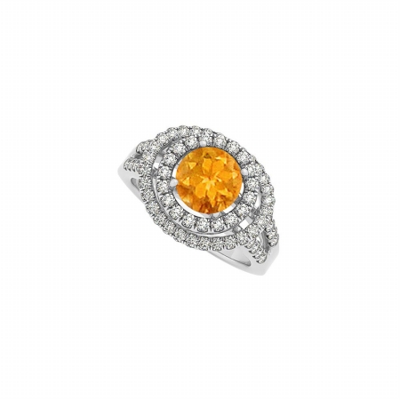 Fine Jewelry Vault UBNR83626W14CZCT Glowing Citrine & CZ Double Halo Engagement Ring, 65 Stones