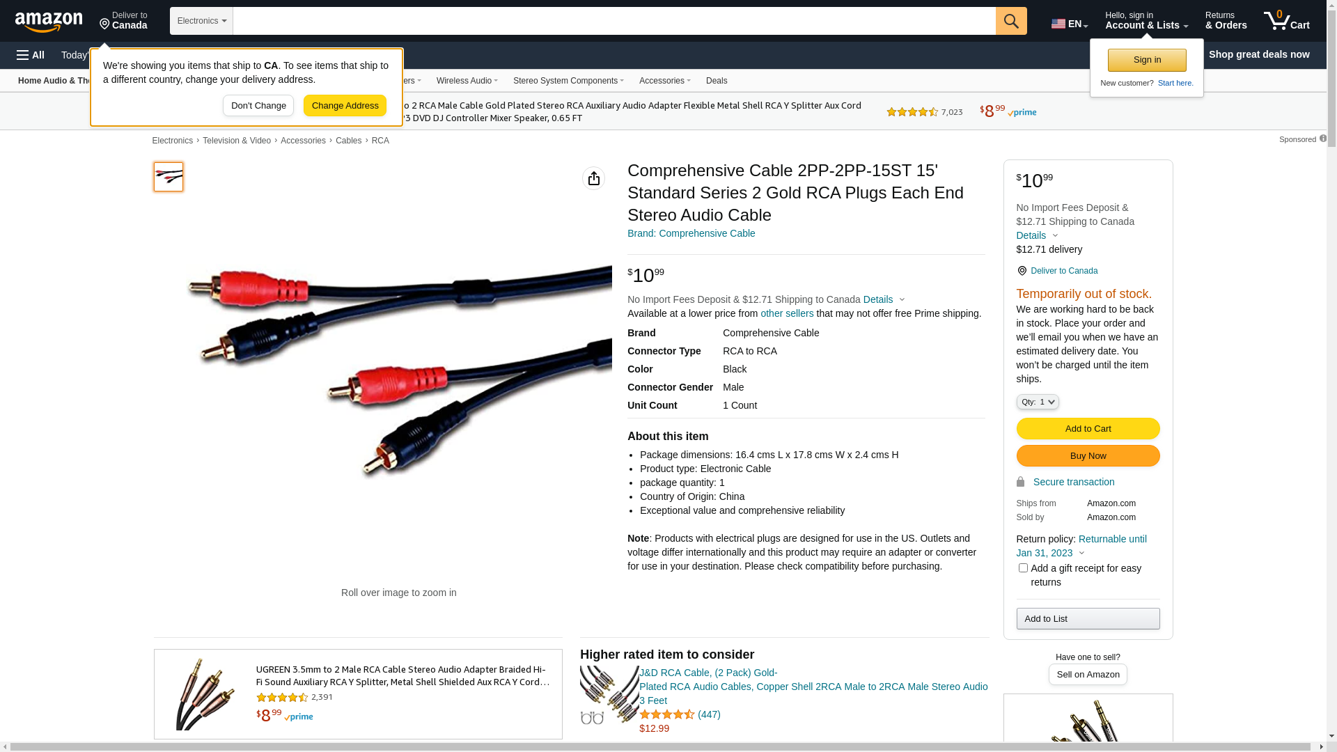 | Feature | "Comprehensive - 15' Standard Series Stereo Gold RCA Audio Cable" |