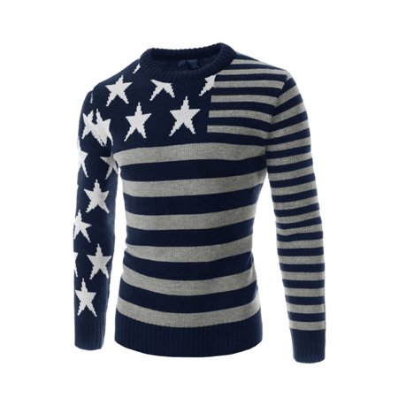 <ul> <li>60% Cotton, 40% Polyester</li> <li>Crew Neck, Long Sleeves, Stars Pattern</li> <li>Pullover Design, Stripes Pattern</li> <li>Casual, Ribbed Hem, Knit Shirt</li> </ul>