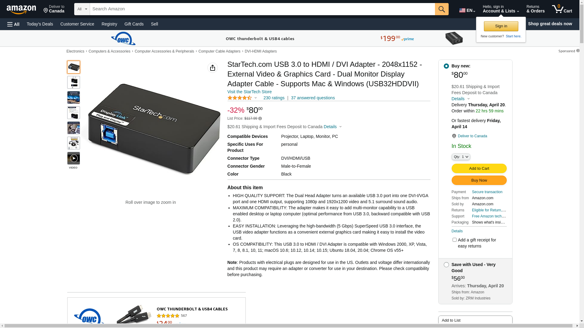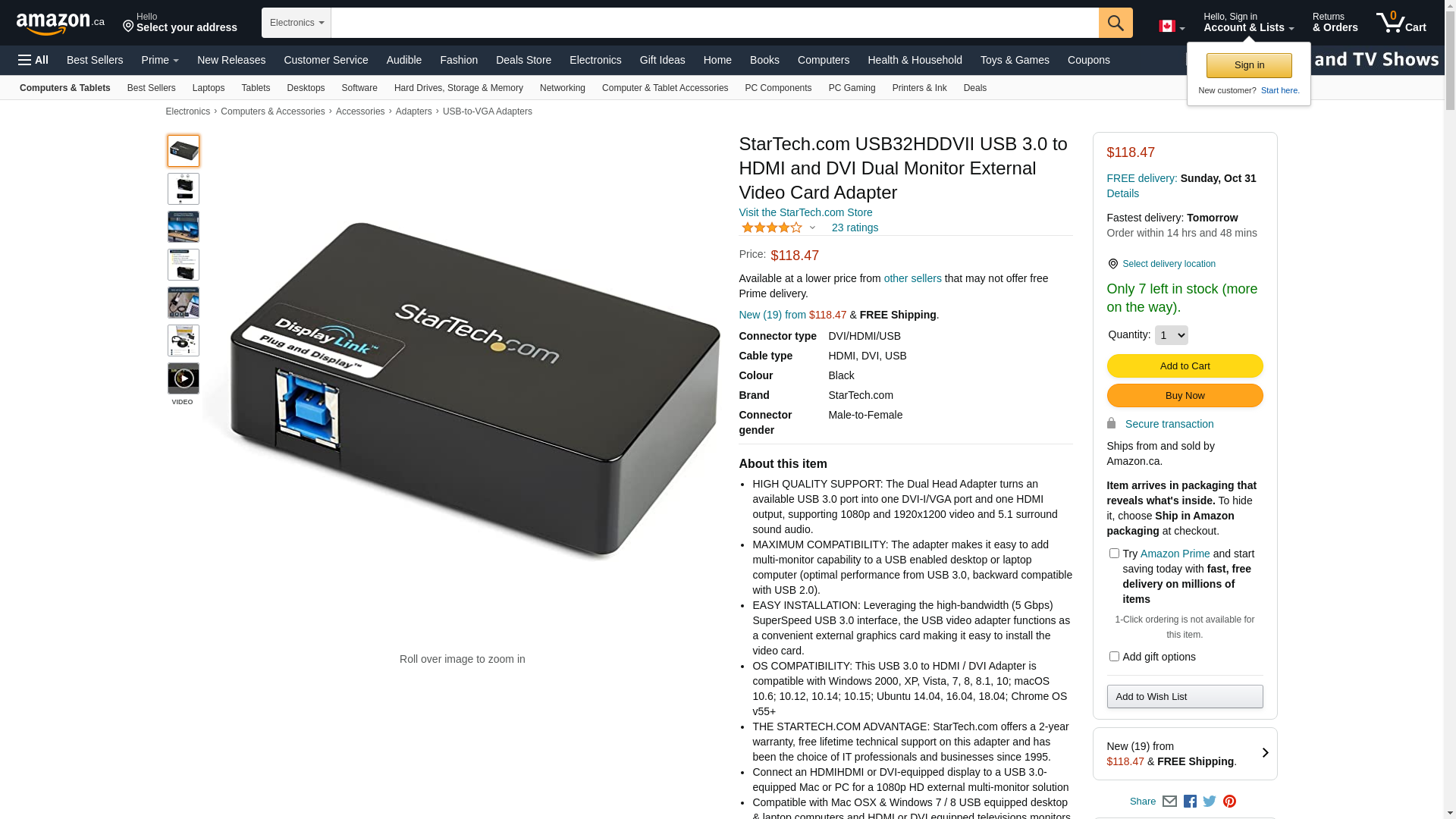 Buy StarTech.com USB 3.0 to HDMI / DVI Adapter - 2048x1152 - External Video & Graphics Card - Dual Monitor Display Adapter Cable - Supports Mac & Windows (USB32HDDVII): Cables & Interconnects - Amazon.com ? FREE DELIVERY possible on eligible purchases