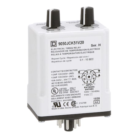 SCHNEIDER ELECTRIC 9050JCK51V20 Timer Relay 240 VAC 10 Amp T-Jck